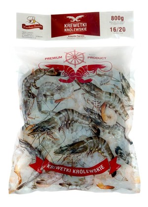 Krewetki Królewskie Tygrysie w opakowaniach o masie netto 750 g. i 800 g.
